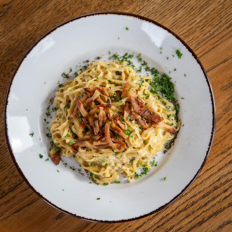 Pecorino, eggs, crispy guanciale, cream sauce.