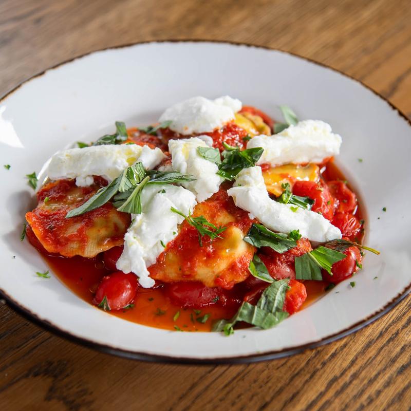 Ravioli stuffed with spinach and cheese, buffalo mozzarella, tomato basil sauce.
