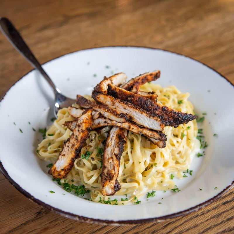 Cajun seasoned chicken breast, garlic parmesan cream.