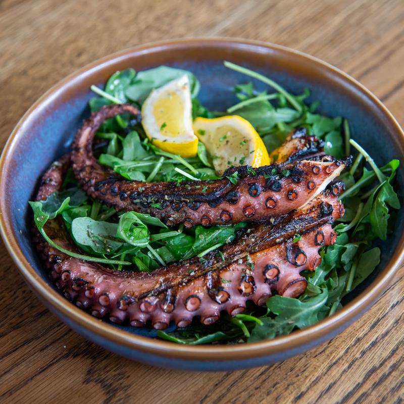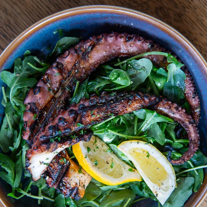 Grilled octopus, red onions, lemon.