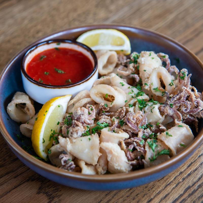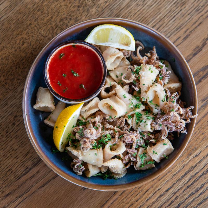 Fried calamari, marinara, lemon.