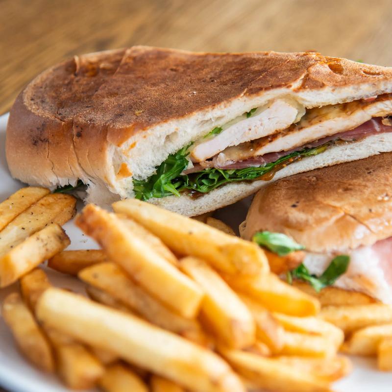 Grilled chicken, prosciutto, gruyere, fig spread, arugula, side of fries.