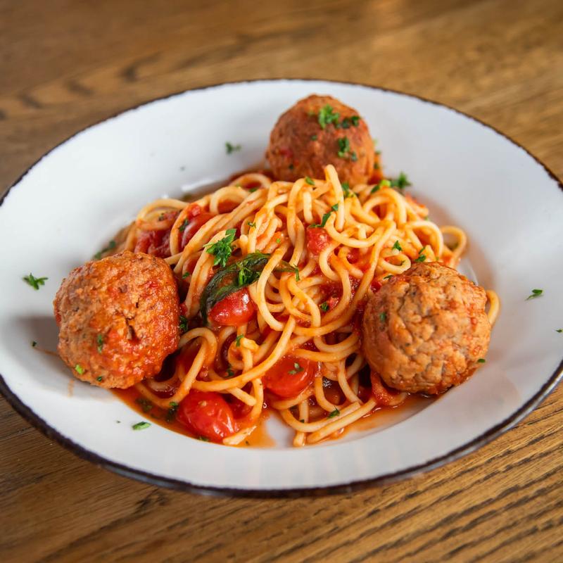 Spaghetti alla Pomodoro with Meatballs