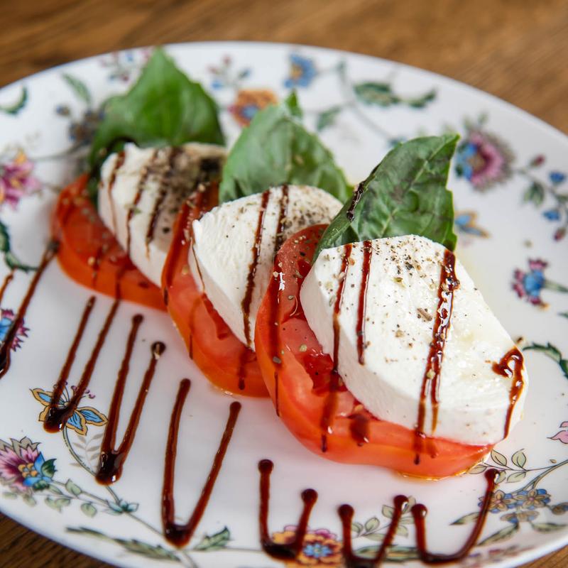 Buffalo mozzarella, tomatoes, basil, honey balsamic vinegar, EVOO