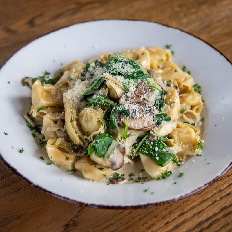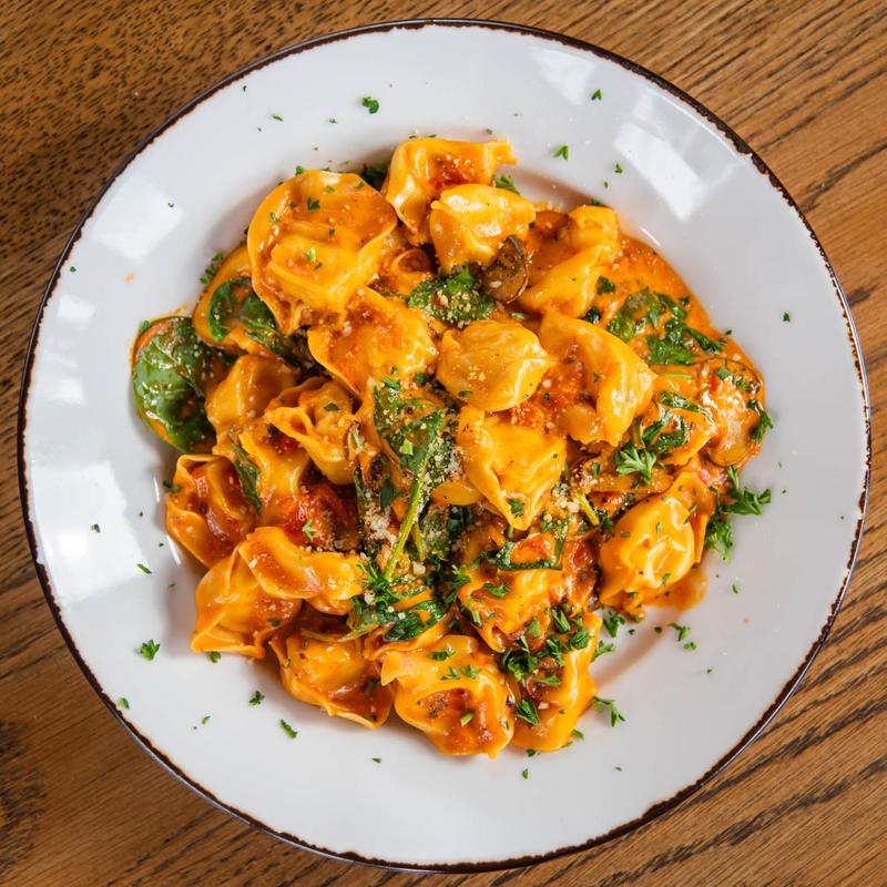 3-cheese tortellini, spinach, wild mushrooms, creamy roasted red pepper sauce.