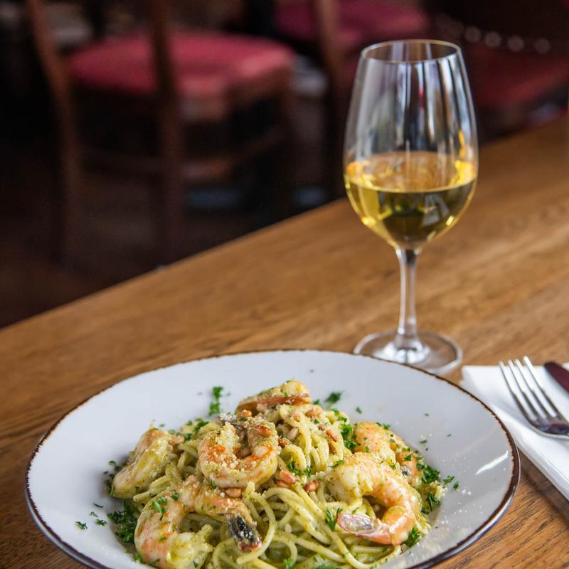 Sautèed shrimp tossed with lemon garlic butter and spaghetti