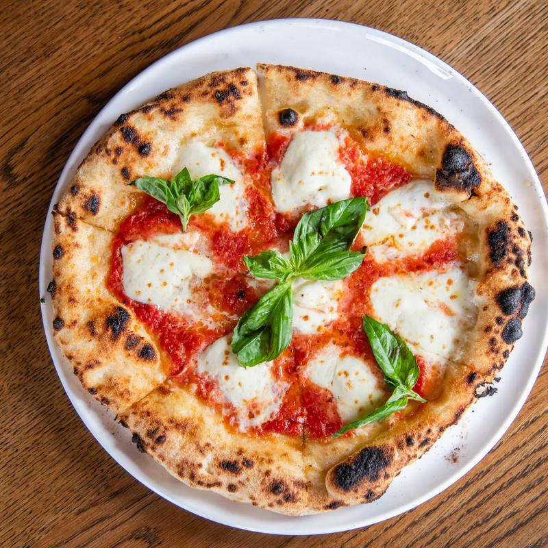 Buffalo mozzarella, parmesan, spicy Neapolitan salami, luganega sausage, basil.