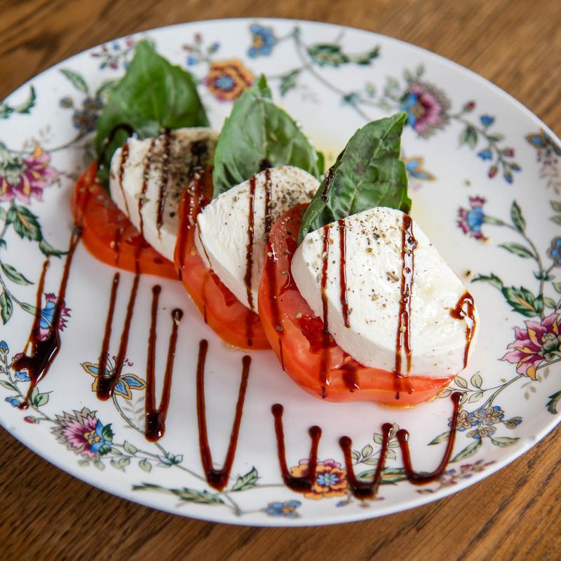 Buffalo mozzarella, tomatoes, basil, honey balsamic vinegar, EVOO.