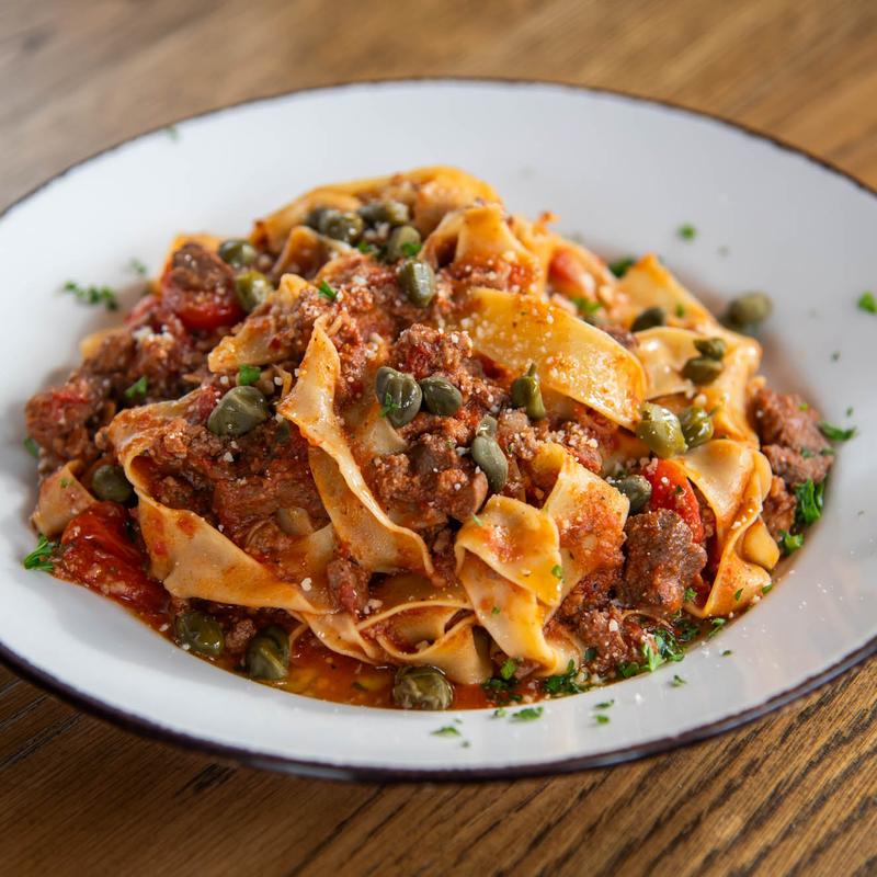 Braised tenderloin, parmesan, capers, wild boar bolognese.