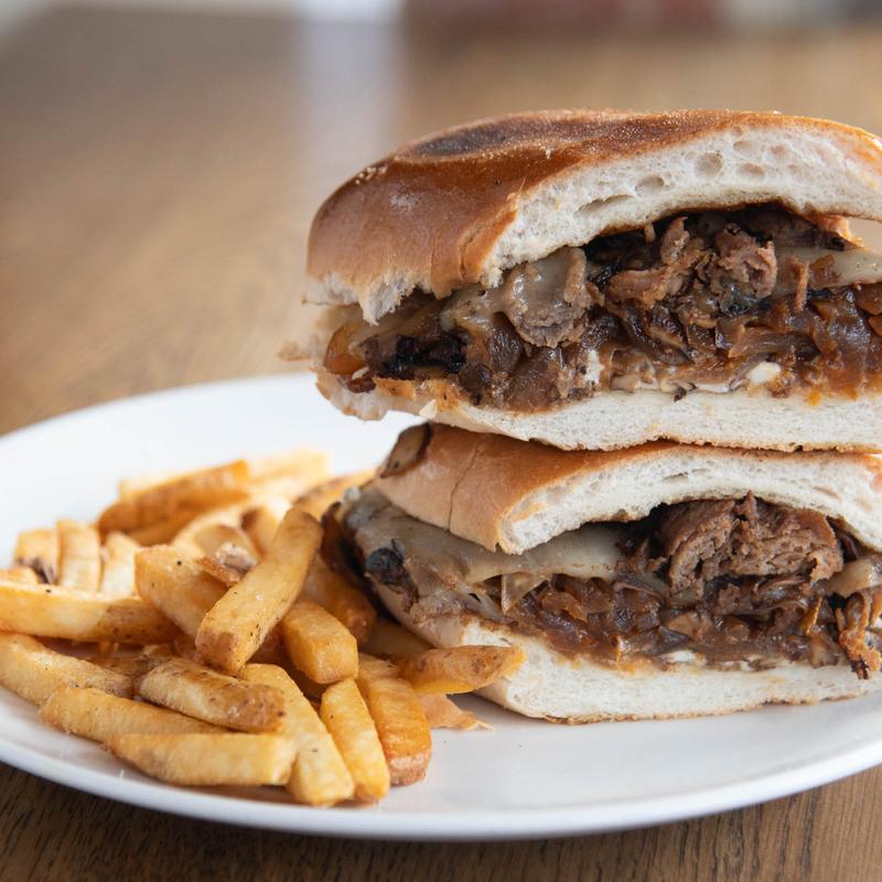 Shaved steak, caramelized onions, provolone, mushrooms, mayo, side of fries